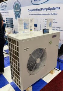 Air-to-water heat pumps are becoming more common. As the name implies, air-to-water heat pumps transfer heat to water, which can then be used for space and water heating from a single outdoor unit. If your customer has radiant floors or radiators, air-to-water heat pumps can replace inefficient gas or oil boilers. Heat pumps are far more efficient than boilers and use electricity vs. gas or oil. You can also use a fan coil, essentially a radiator you blow air over, for more traditional forced-air ducted systems. One year ago, I saw two or three air-to-water heat pumps at the show. This year, they were everywhere, including large-scale commercial units.