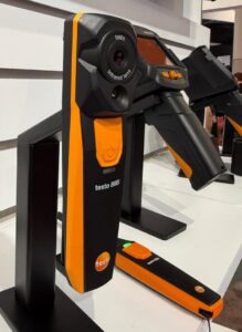 The final product I want to mention is an Infrared (IR) camera from Testo. The Testo 860i is a small IR camera that snaps over your cell phone. This is not a new idea, but it has some advantages over other solutions. One is that it is Bluetooth, so it does not need to be physically plugged into your phone. Another is that it clamps onto your phone via a spring mechanism, which means it works with your protective cover in place. It is higher resolution than most phone-based IR solutions.