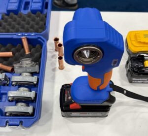 Many of today’s HVAC systems rely on flare fittings rather than brazing or welding. Eventually, every HVAC technician will need to make a flare on a line set during an installation. The process is simple. First, you cut the copper line, then you use a flaring tool to expand the end and create a flare, typically a 45º bevel, at the end. Making flares is not hard. Making clean, properly shaped flares by hand that seal well can be a challenge. Uniweld now offers a power flaring tool. It looks like an electric drill, but a bit different. To use it, install the correct-size flaring collar, insert the copper tube, and pull the trigger. The tool uses a cone on an eccentric base to stretch the copper into a smooth, perfect flare. If you make flares regularly, this tool will be a time-saver, especially if it reduces leaks. One feature I appreciated is that it works with existing drill/driver batteries from Dewalt, Milwaukee, and Makita.